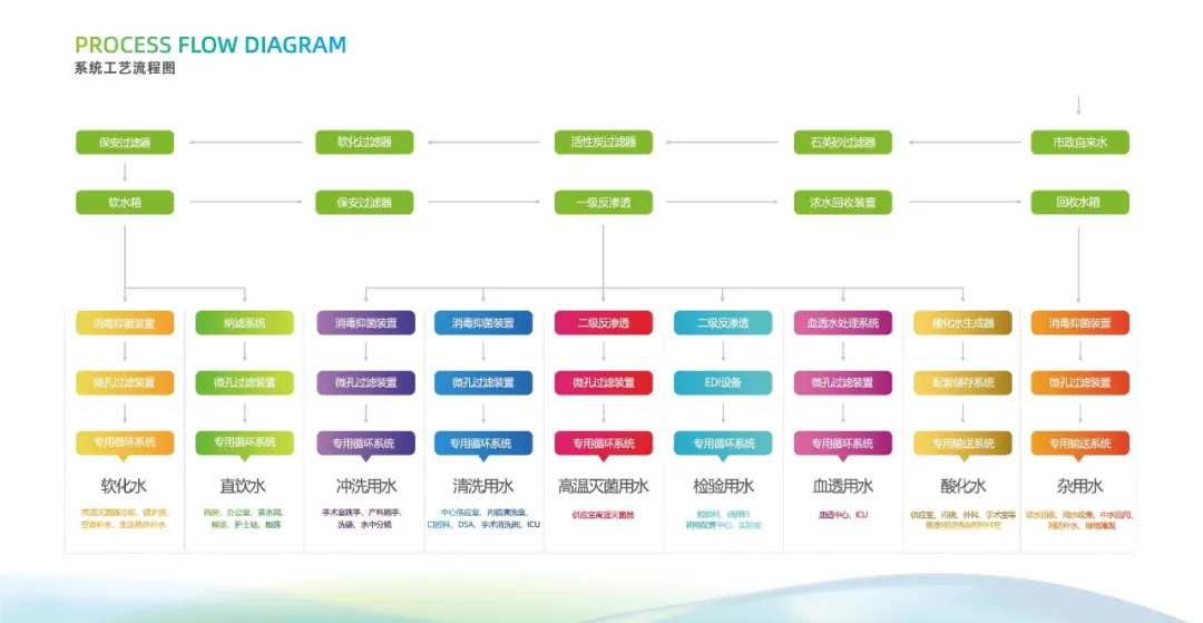 上圖為醫(yī)院集中分質(zhì)供水系統(tǒng)工藝流程圖